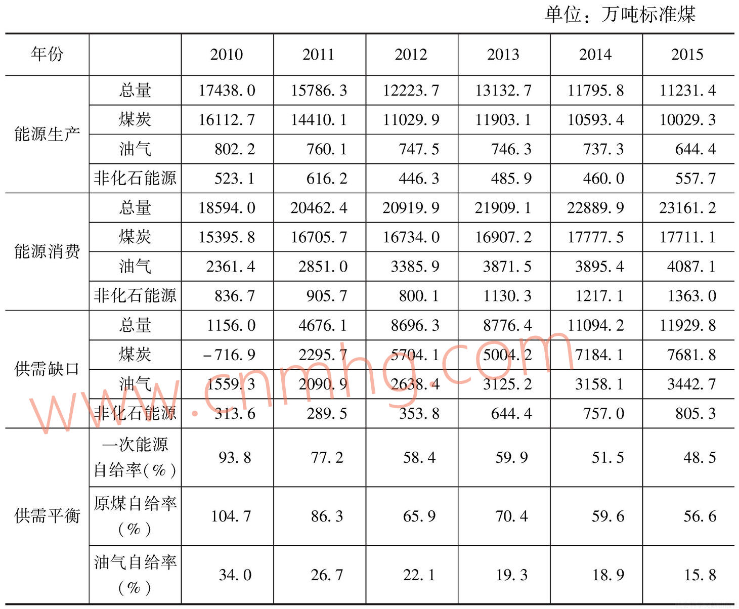 2.煤炭在能源生產(chǎn)結(jié)構(gòu)中一直保持較高水平