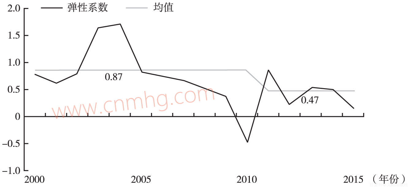 圖1 2000~2015年河南省能源消費(fèi)彈性系數(shù)