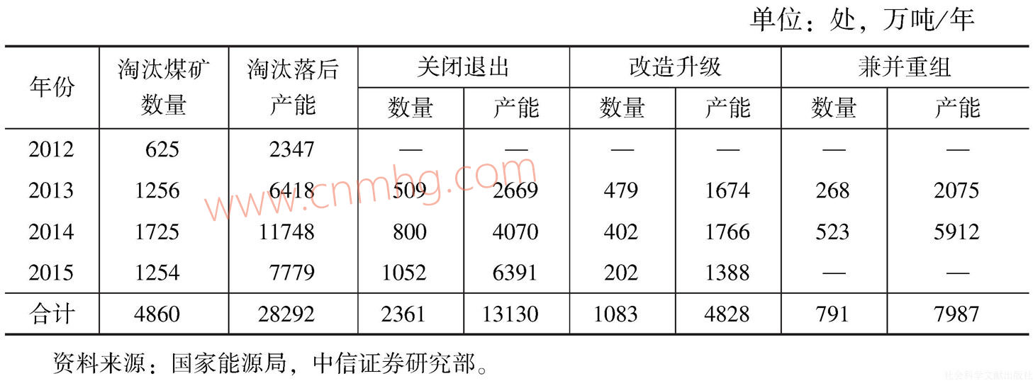表2 2015年煤炭行業(yè)淘汰落后產(chǎn)能計劃