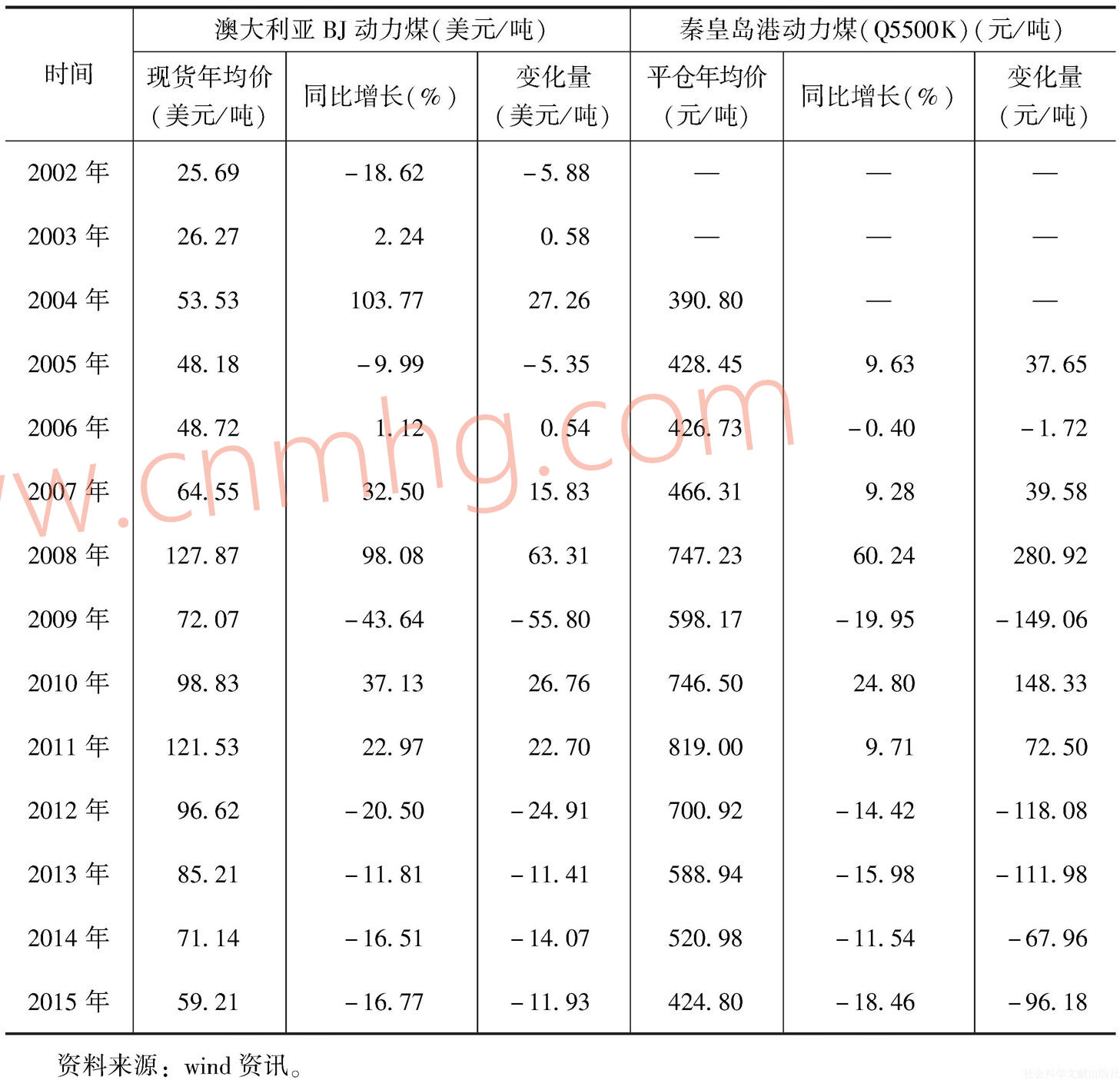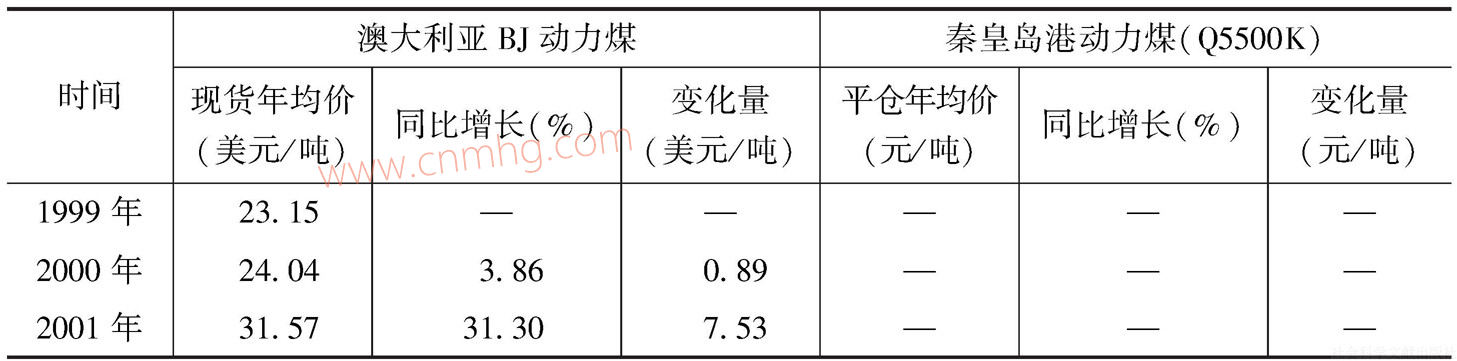 表4 國內(nèi)外動力煤現(xiàn)貨價格走勢對比-續(xù)表
