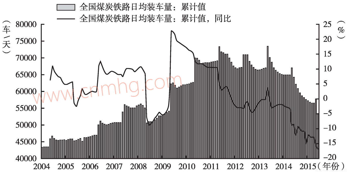 此外,中國煤炭鐵路運輸日趨惡化的數(shù)據(jù)也在一定程度上反映了煤炭下游行業(yè)增速不斷下滑、煤炭市場需求持續(xù)低迷的殘酷現(xiàn)實。