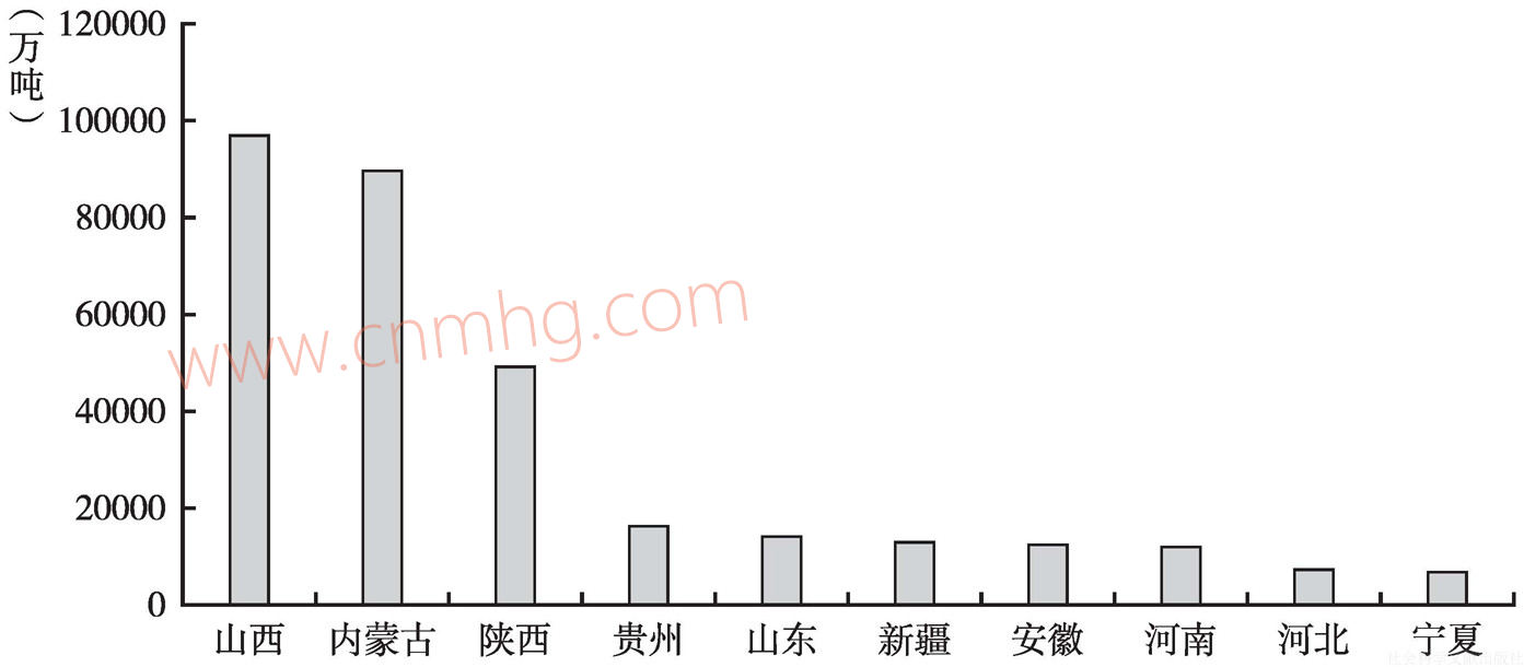 圖3 2015年中國前十大地區(qū)原煤產(chǎn)量