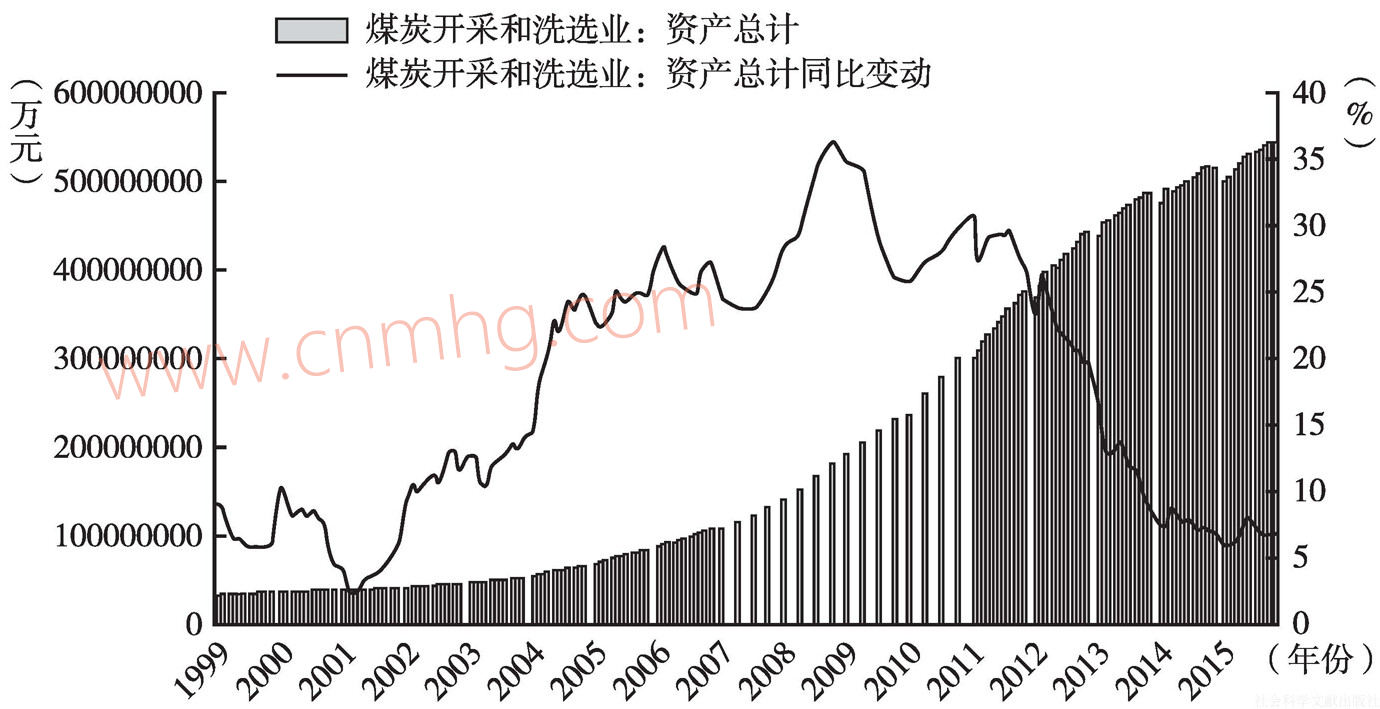 圖15 中國煤炭行業(yè)總資產(chǎn)及其同比變動情況