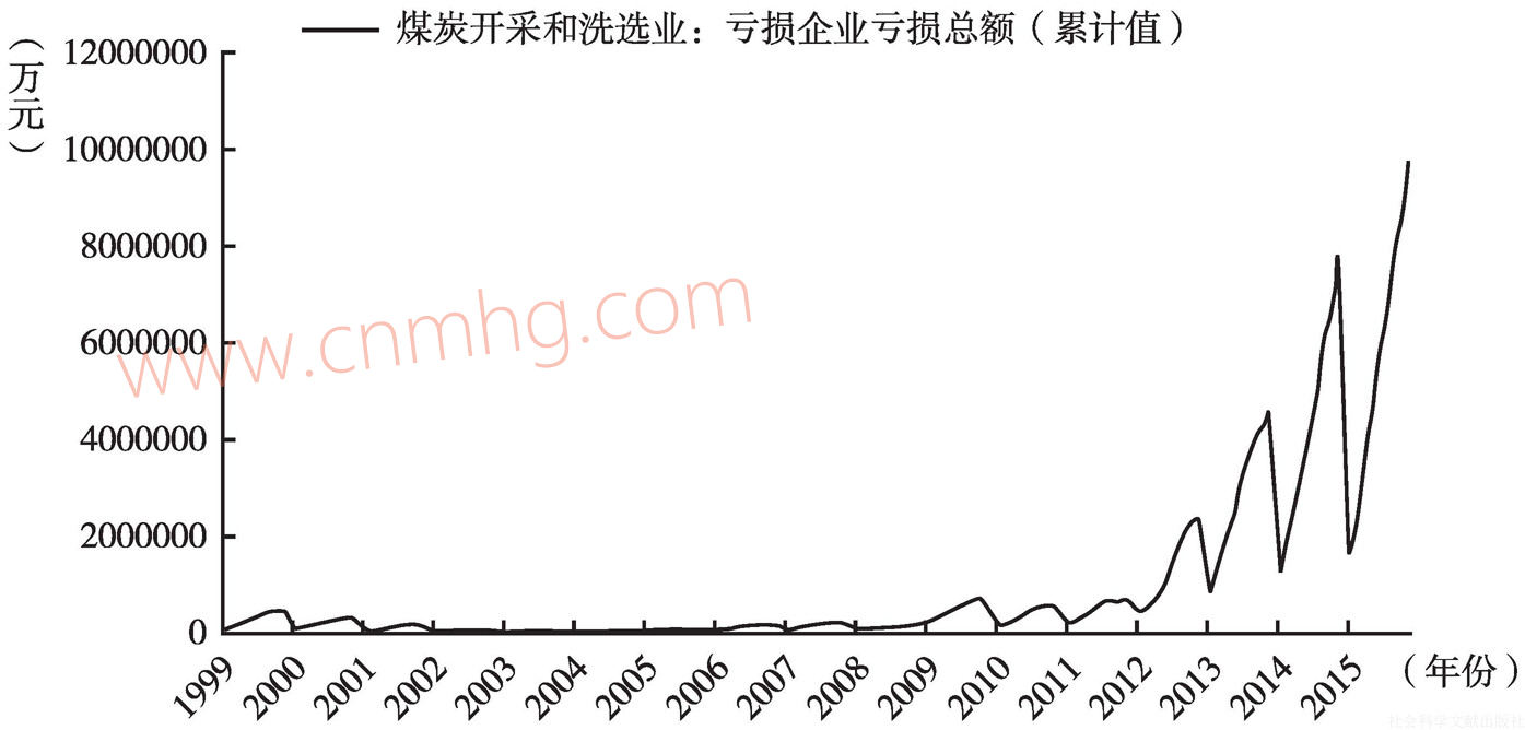 2015年1~12月,中國煤炭開采和洗選業(yè)虧損企業(yè)累計虧損總額增加了190.86億元至972.6億元,同比增加了24.41%,創(chuàng)出自1999年以來的歷史之最。中國煤炭開采和洗選業(yè)虧損企業(yè)數(shù)量增加了98家至2027家,企業(yè)總數(shù)量下降了668家至6430家,虧損企業(yè)占企業(yè)總數(shù)的31.52%。