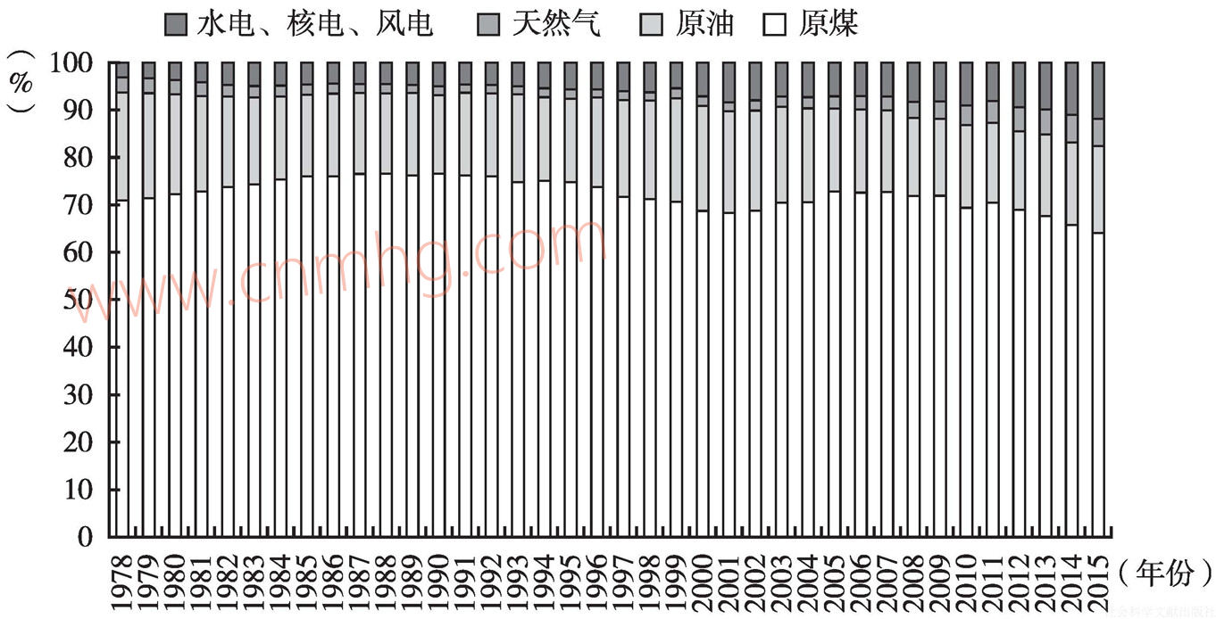 圖28 改革開放以來中國一次能源生產(chǎn)結(jié)構(gòu)變化