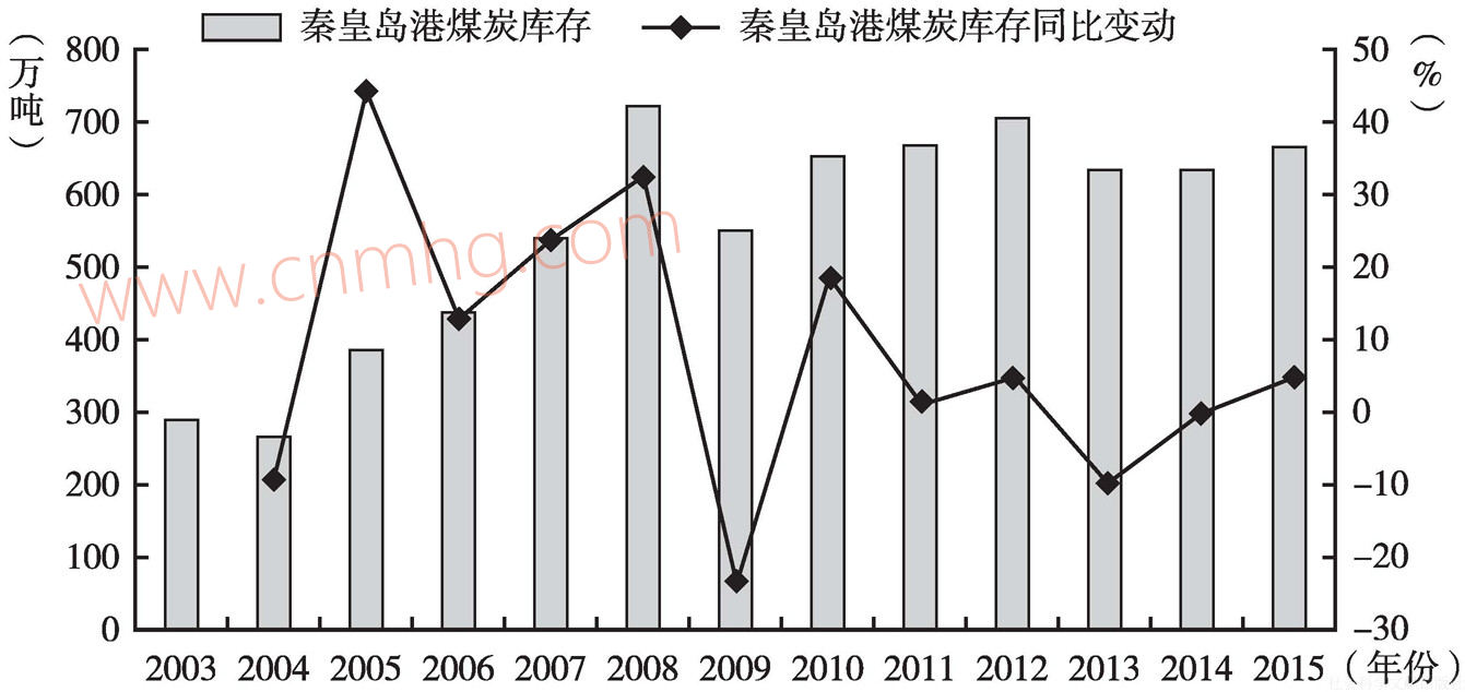 圖11 秦皇島港煤炭庫存及其增速