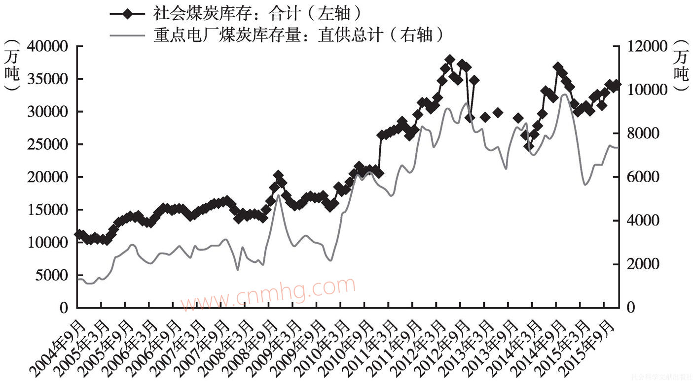 圖9 中國社會煤炭庫存和重點電廠煤炭庫存量