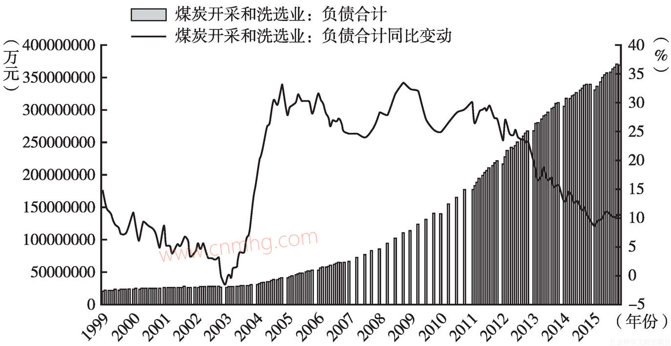 圖16 中國煤炭行業(yè)總負債及其同比變動情況