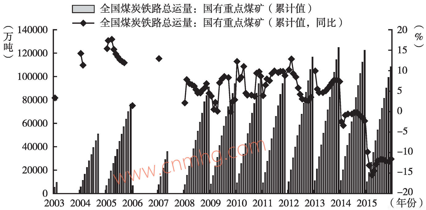 國家發(fā)改委公布的數(shù)據(jù)顯示,2015年,中國鐵路煤炭發(fā)運量為20億噸,同比增長-12.6%。主要煤運通道中,大秦線完成煤炭運量4億噸,同比增長-11.8%;侯月線完成1.7億噸,同比增長-11.7%。