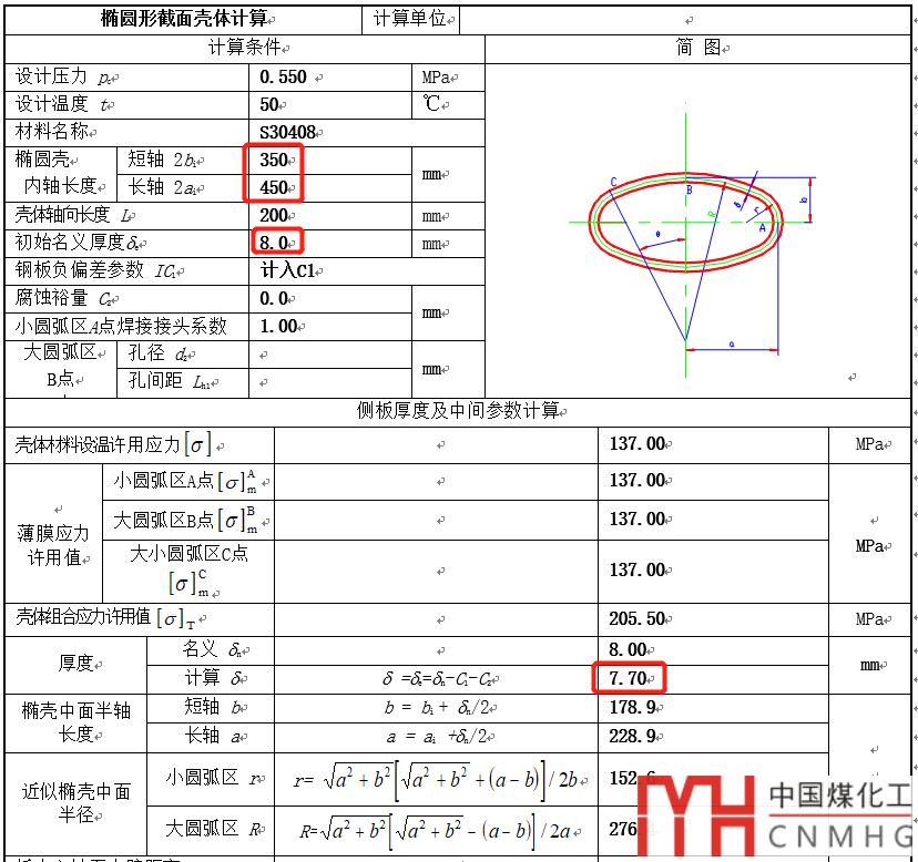 用0.55MPa生成一下S30408材料的450*350橢圓筒節(jié)的計(jì)算書(shū),