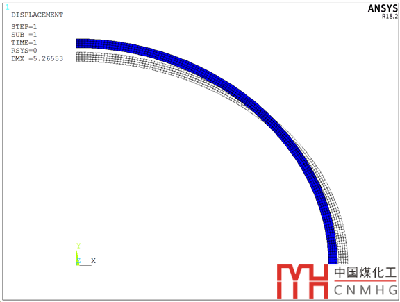 從變化趨勢(shì)可看到,橢圓筒體的長(zhǎng)軸向內(nèi)凹(受壓),短軸向外擴(kuò)張(受拉),橢圓筒體更圓了。