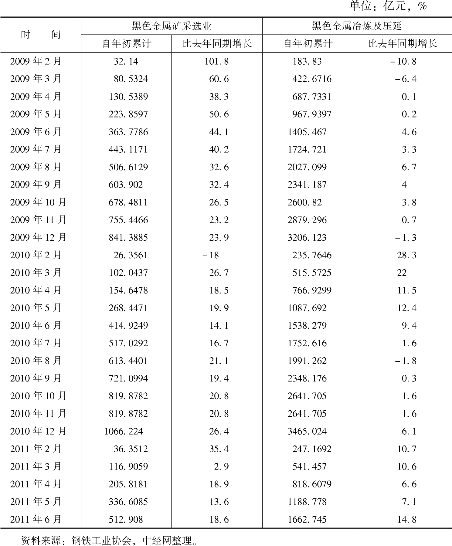 表3-6 2010年以來黑色金屬礦采選業(yè)銷售收入、利潤累計(jì)及其累計(jì)增速