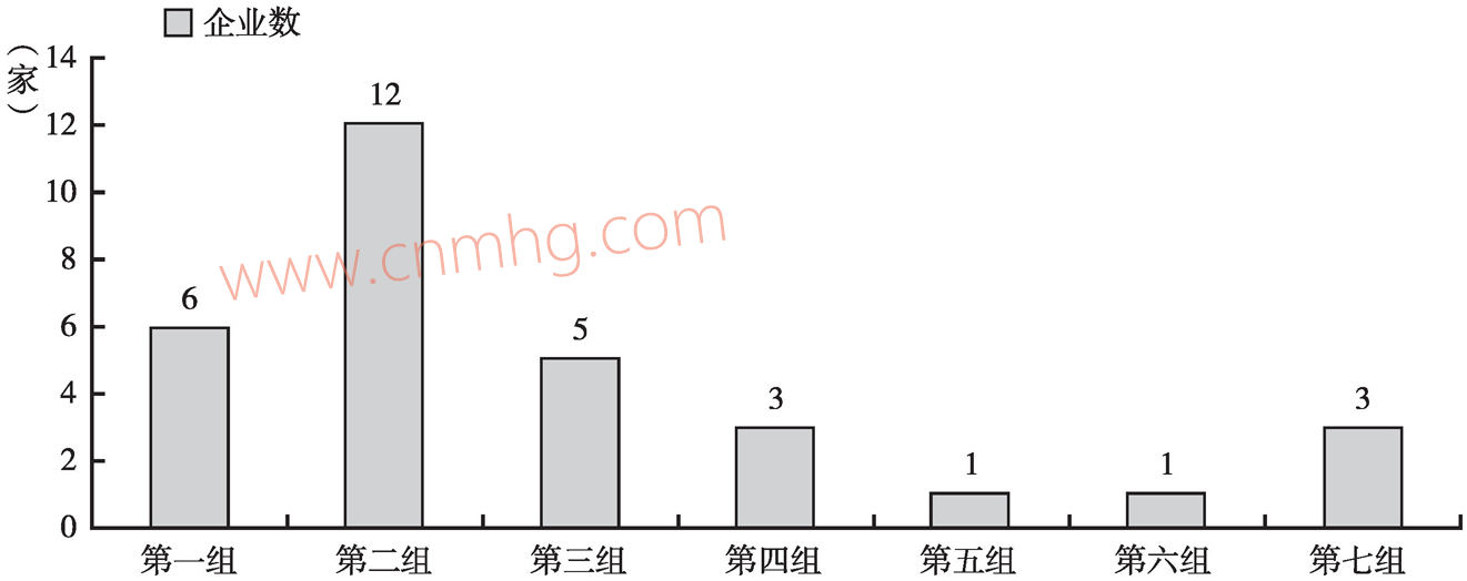這一組企業(yè)的突出優(yōu)勢(shì)較為分散。其中,以規(guī)模競爭力取勝的企業(yè)25家,以效率競爭力取勝的企業(yè)16家,以增長競爭力取勝的企業(yè)18家。有部分企業(yè)在某一方面的競爭力十分突出,但另外兩方面差距較大,導(dǎo)致反映綜合情況的基礎(chǔ)競爭力排名居后。