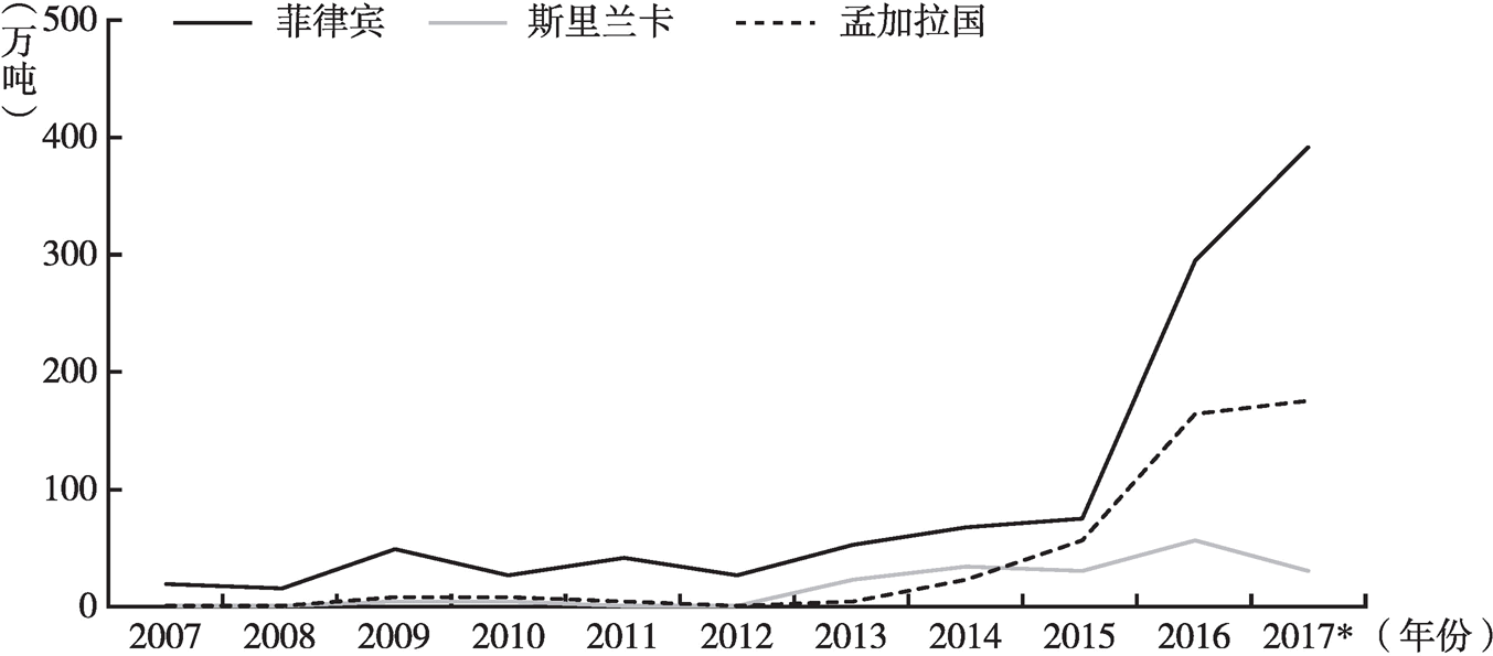 圖6 中國向菲律賓、斯里蘭卡和孟加拉國出口成品油變化趨勢