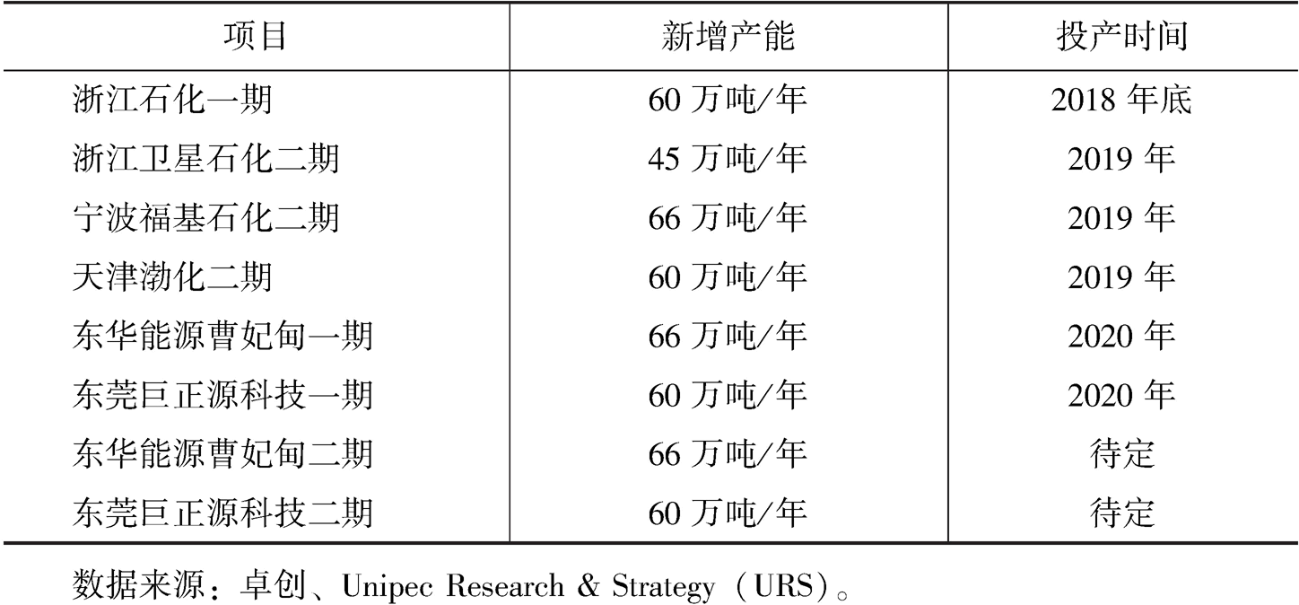 從中長期看,根據(jù)目前公布的規(guī)劃,2019~2021年東華能源、浙江衛(wèi)星、浙江石化等多套裝置將逐步投產(chǎn),PDH裝置將迎來下一個輝煌的階段,中國LPG進口市場后期發(fā)展?jié)摿σ廊痪薮?,預(yù)計2019年新增產(chǎn)能為230萬噸/年,2020年新增產(chǎn)能為126萬噸/年,屆時我國LPG將迎來下一個爆發(fā)式增長階段(見表1)。