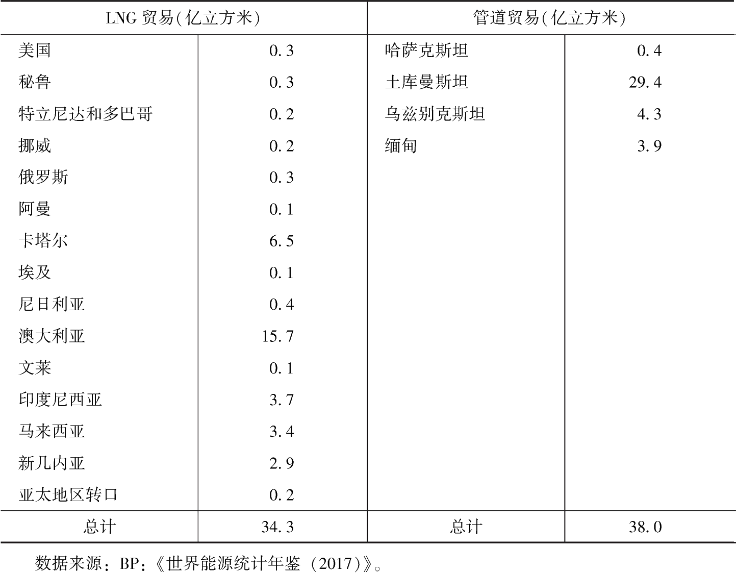 表3-4 2016年中國天然氣貿(mào)易