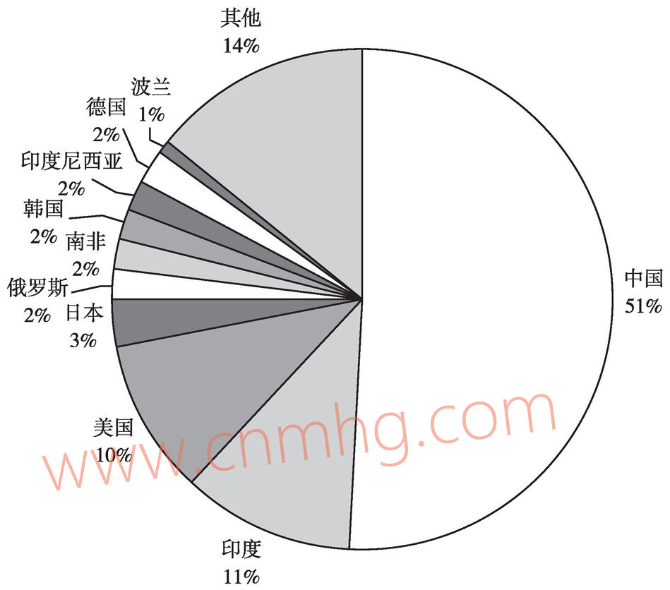 圖3-6 2016年居煤炭消費前十位的國家