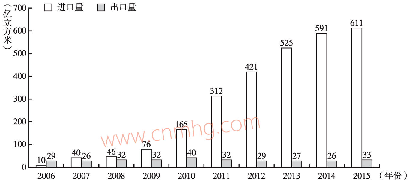 圖3-15 中國天然氣進出口量的變化