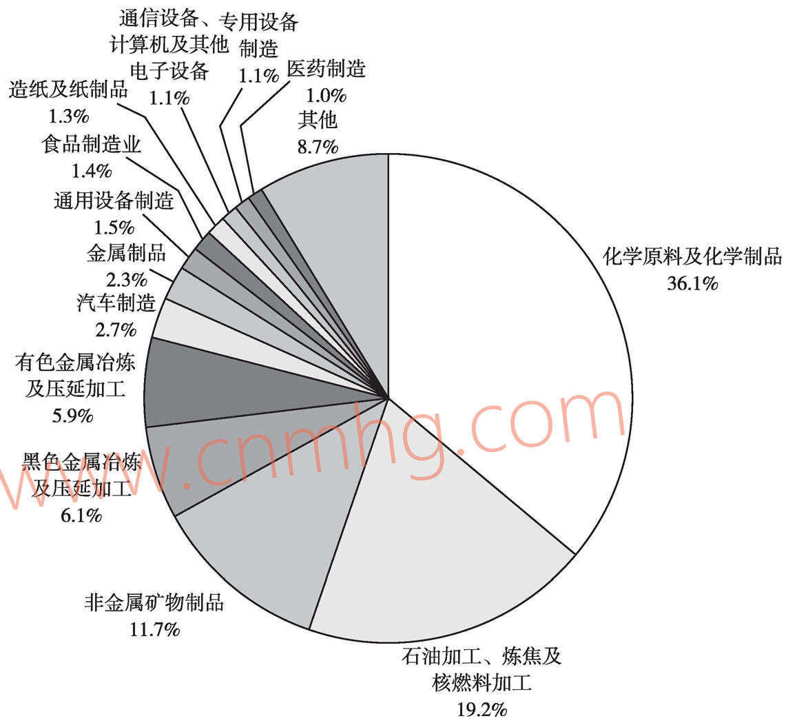 中國經(jīng)濟轉(zhuǎn)型與環(huán)境污染治理需要清潔能源。中國經(jīng)濟發(fā)展進入新常態(tài)以后,經(jīng)濟發(fā)展方式正在從粗放型向集約型轉(zhuǎn)變,高耗能、高污染行業(yè)的低端產(chǎn)能逐步被淘汰,但高耗能的重化工行業(yè)仍然是中國煤炭消費的主力軍(見圖3-8),大氣、水質(zhì)等源頭性污染的解決需要更加清潔的能源。另外,雖然煤炭清潔技術(shù)不斷提高,但由于受到污染物總量規(guī)制等條件的限制,即使單個企業(yè)的污染物排放達標,但當區(qū)域內(nèi)多家企業(yè)同時排放時,便會出現(xiàn)污染物排放超標的情況,因此使用清潔能源是解決污染物排放總量超標的途徑之一。