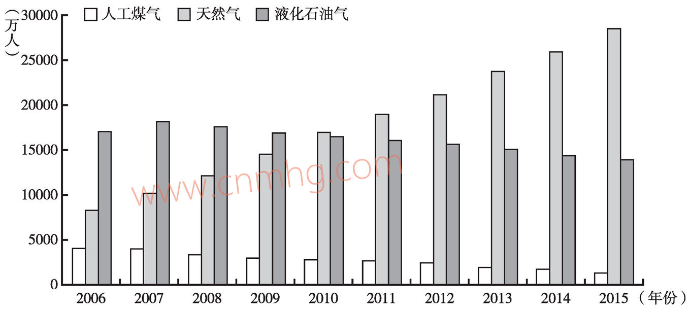 圖3-27 中國城市用氣結(jié)構(gòu)的變化