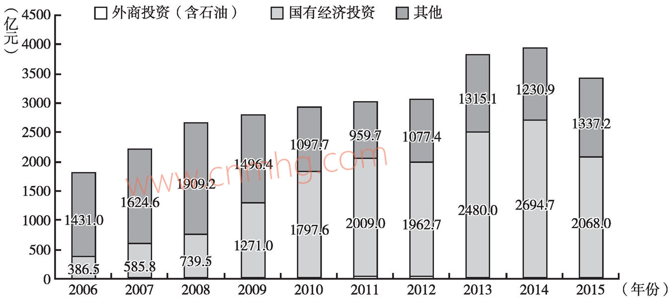 降低社會資本進入壁壘。從目前天然氣行業(yè)固定資產(chǎn)投資的結(jié)構(gòu)來看(見圖3-11),天然氣行業(yè)固定資產(chǎn)投資主要以國有經(jīng)濟為主,2015年,國有經(jīng)濟投資占比60.4%,而石油天然氣行業(yè)的外商投資之和為19.7億元人民幣,占比僅為0.58%左右。天然氣人民幣將進一步激發(fā)國內(nèi)外的社會資本投入到中國天然氣行業(yè)的發(fā)展當中,中國天然氣行業(yè)的壟斷程度將大大降低,對外開放水平將進一步提高,吸引國內(nèi)外社會資本的能力也將進一步提升。同時,社會資本的引入將促進上游供應(yīng)商的多元化,加快先進技術(shù)的引入與開發(fā),提升天然氣的開采與供給能力,推動天然氣市場競爭機制的進一步完善以及天然氣價格的公平與合理。使用人民幣進行計價和結(jié)算也將提高其他國家在中國投資的積極性。