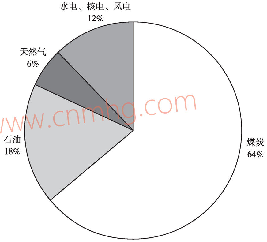 圖3-20 中國能源供給結(jié)構(gòu)的變化
