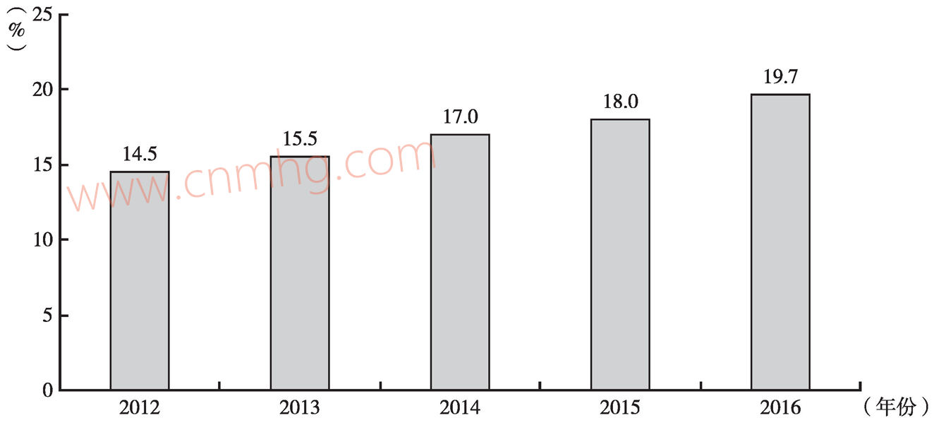中國的能源轉(zhuǎn)型需要增加天然氣消費。從中國清潔能源消費占比的變化來看(見圖3-10),自2012年以來,中國清潔能源消費占比不斷提高,2016年達到了19.7%,雖然增長緩慢,但是呈現(xiàn)出了上升趨勢,這說明中國的能源轉(zhuǎn)型正在逐步推進。天然氣作為一種清潔能源,與新能源相比具有成本低與技術(shù)成熟的優(yōu)勢,對于要提高清潔能源消費占比的中國來說是不二之選,而且中國天然氣在一次能源消費中的占比遠遠低于世界平均水平,因此,要提高清潔能源消費占比就需要進一步提高天然氣的使用率。