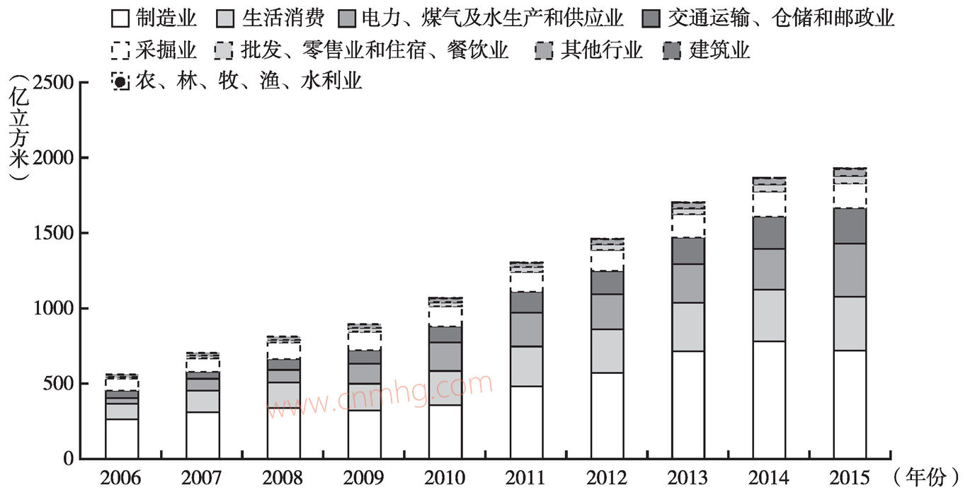 圖3-25 中國分行業(yè)天然氣消費的變化