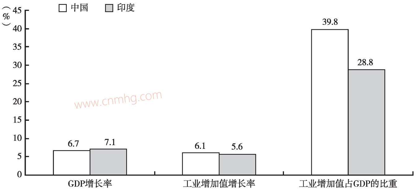 圖3-7 中國與印度經(jīng)濟增速對比
