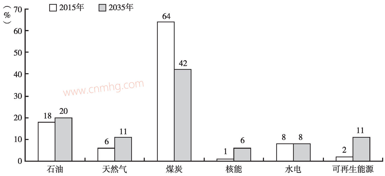 圖3-24 中國一次能源消費結(jié)構(gòu)預(yù)測