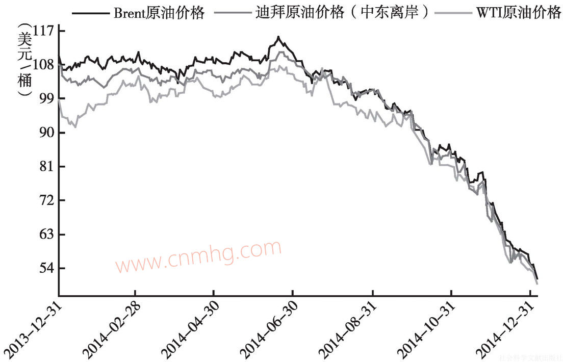 圖2.8 國(guó)際原油價(jià)格走勢(shì)(2013~2014年)