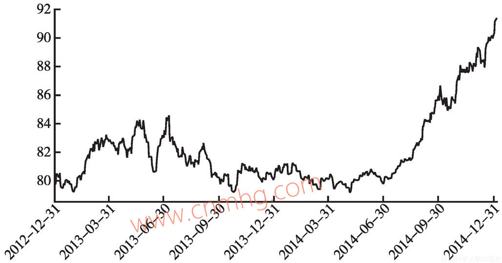 圖2.9 美元指數(shù)變化趨勢(shì)(2012~2014年)