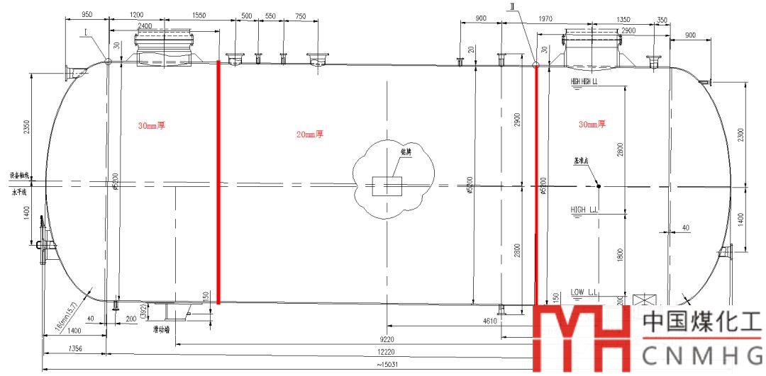 “原本20mm夠的,應力不肯降載荷,所以管口處筒體加厚了10mm,變成了3截。”