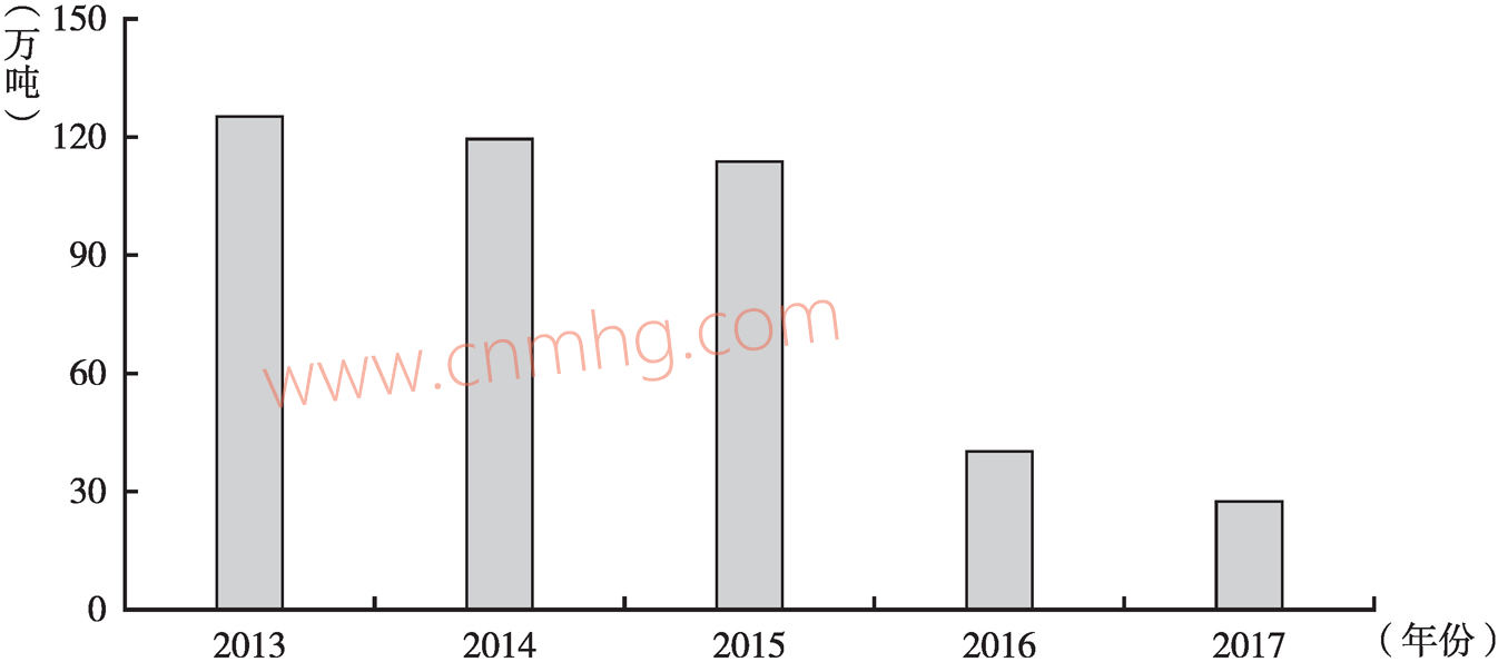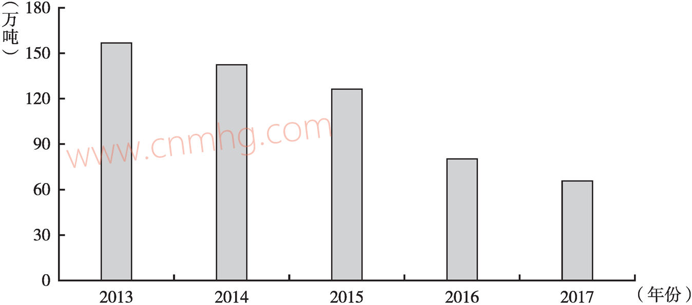 圖13 2013~2017年河南省煙粉塵排放情況