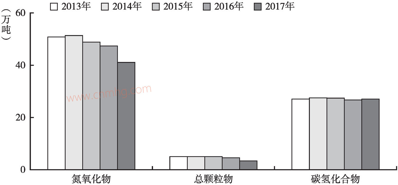 圖16 2013~2017年河南省機(jī)動(dòng)車(chē)污染物排放情況