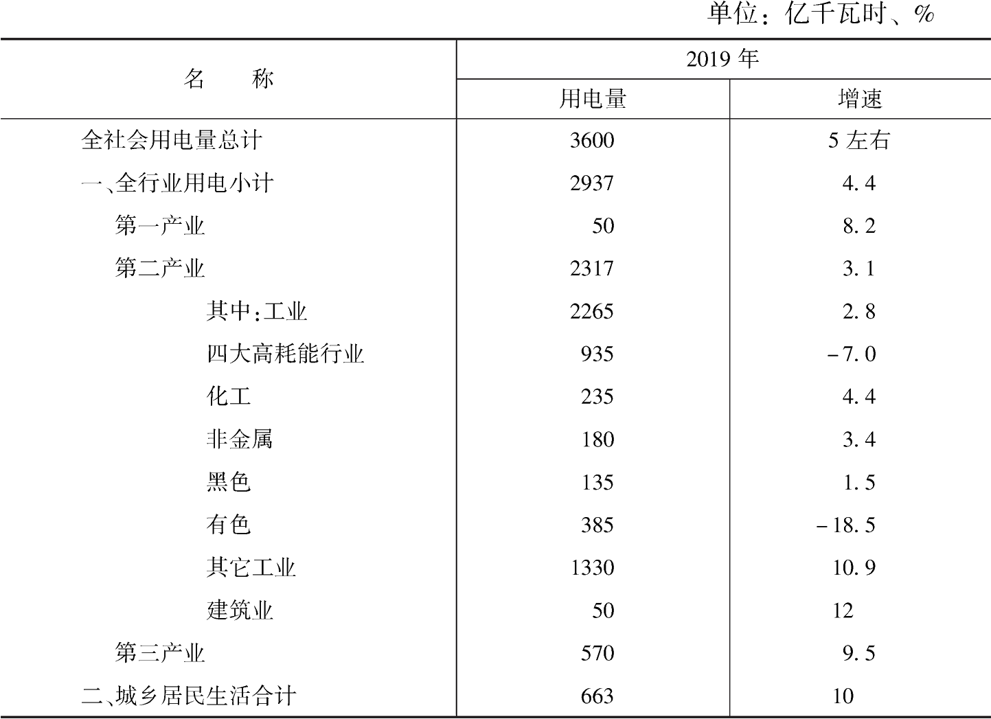 根據(jù)對四大高耗能行業(yè)和其他工業(yè)用電量預(yù)測結(jié)果,預(yù)計(jì)2019年工業(yè)用電量為2265億千瓦時(shí),增速約2.7%。