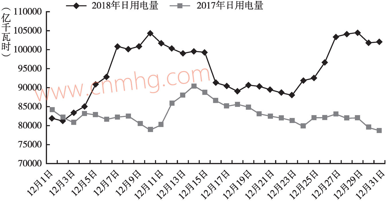 圖4 2017年12月、2018年12月河南省日用電量對比