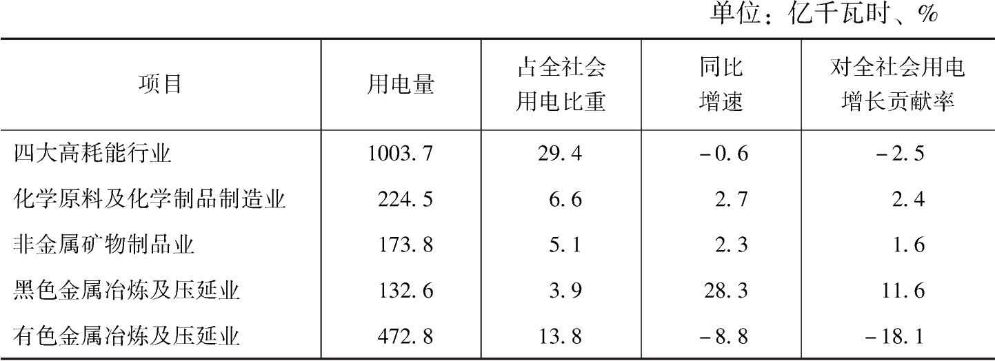 (1)高耗能行業(yè)用電量總體下降(見表2)