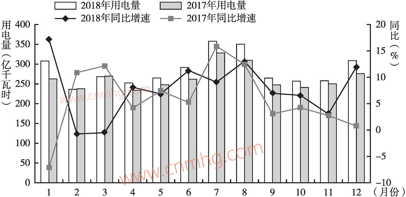 圖1 2018年河南省全社會(huì)用電量及增速情況