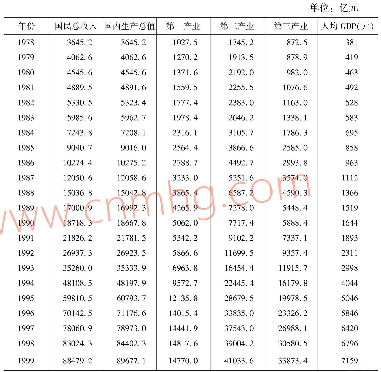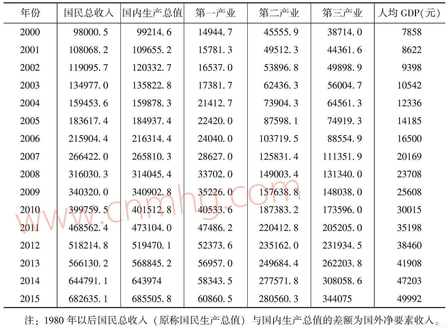 表1 國內(nèi)生產(chǎn)總值(按當(dāng)年價(jià)格計(jì)算)