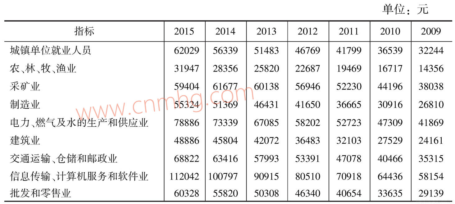 表8 按行業(yè)分城鎮(zhèn)單位就業(yè)人員平均工資