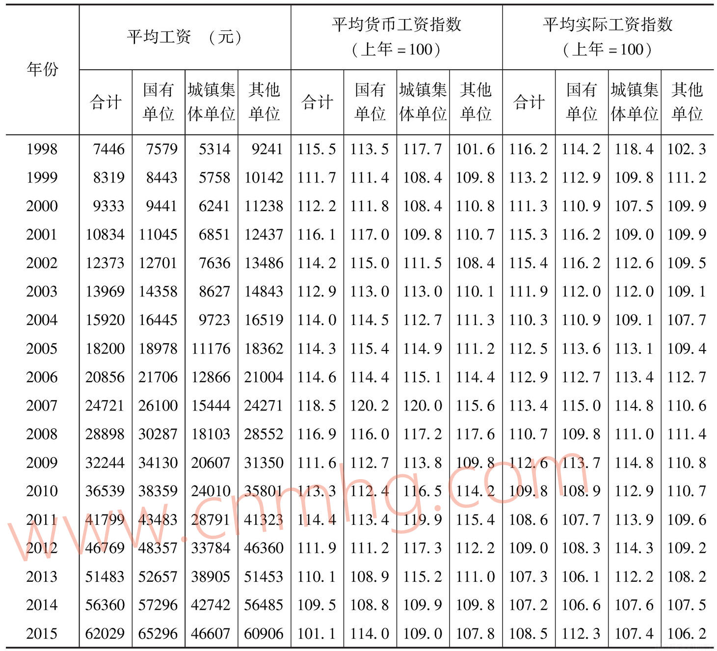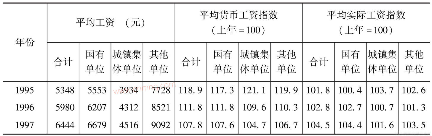 表7 城鎮(zhèn)單位就業(yè)人員平均工資和指數(shù)