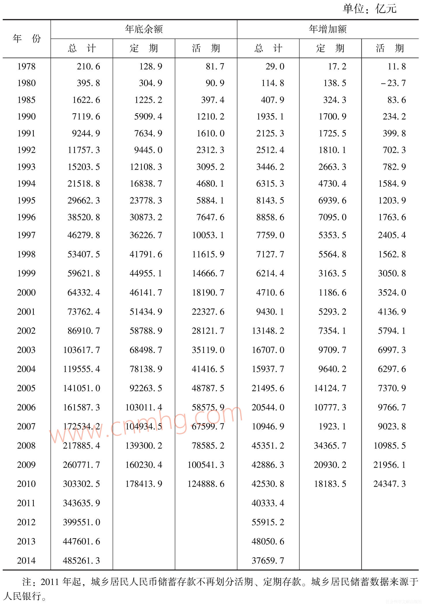 表5 城鄉(xiāng)居民人民幣儲(chǔ)蓄存款