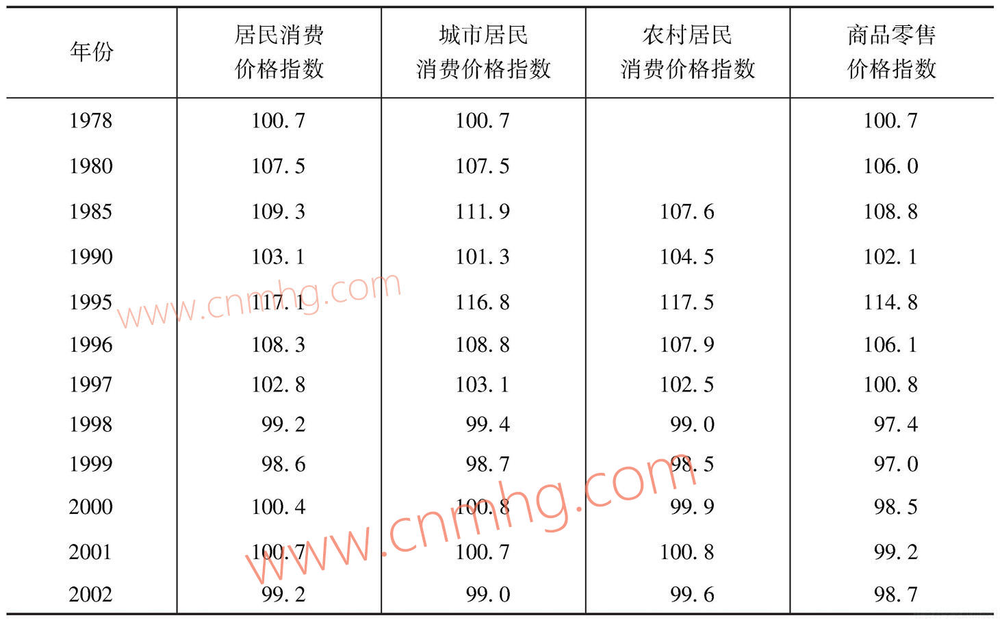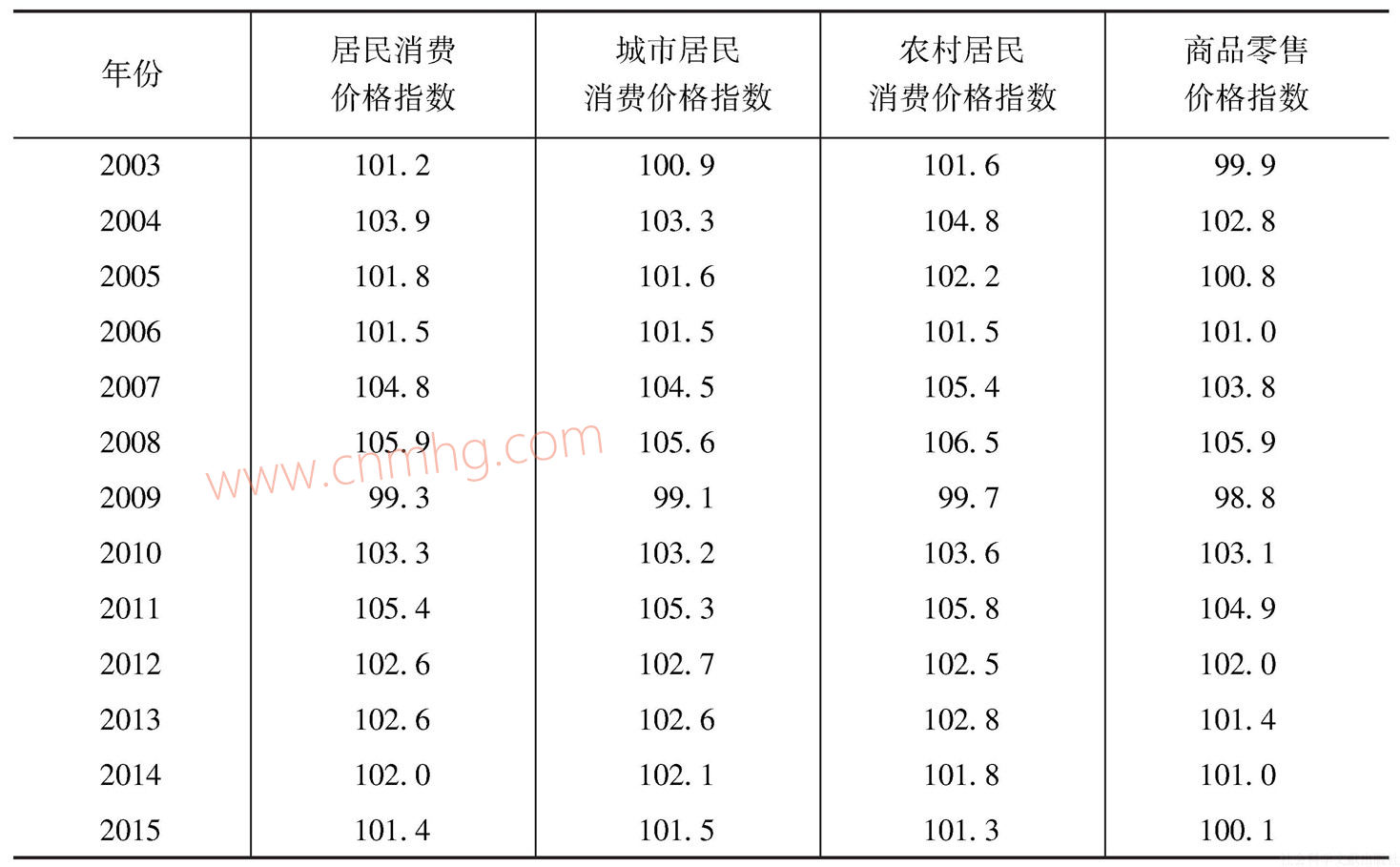 表2 各種價(jià)格指數(shù)(以上年為100)