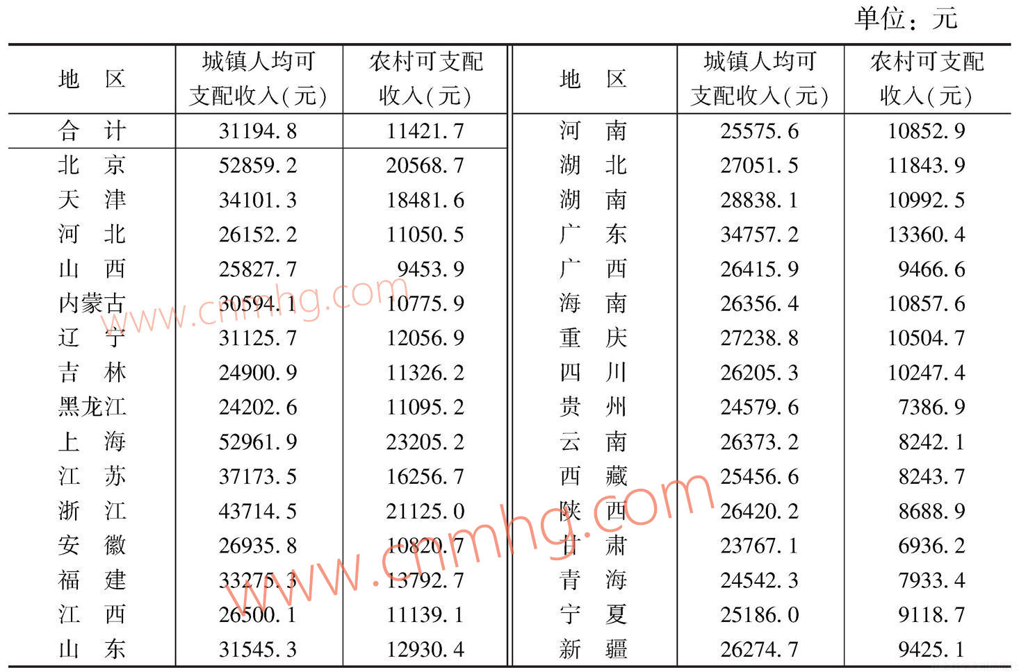 表10 各?。ㄗ灾螀^(qū)、直轄市)居民人均可支配收入(2015年)