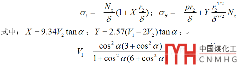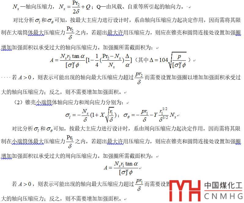(1)錐殼大端筒體軸向應(yīng)力和周向應(yīng)力分別為: