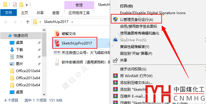 鼠標(biāo)右擊【SketchUp2017】選擇【以管理員身份運行】。
