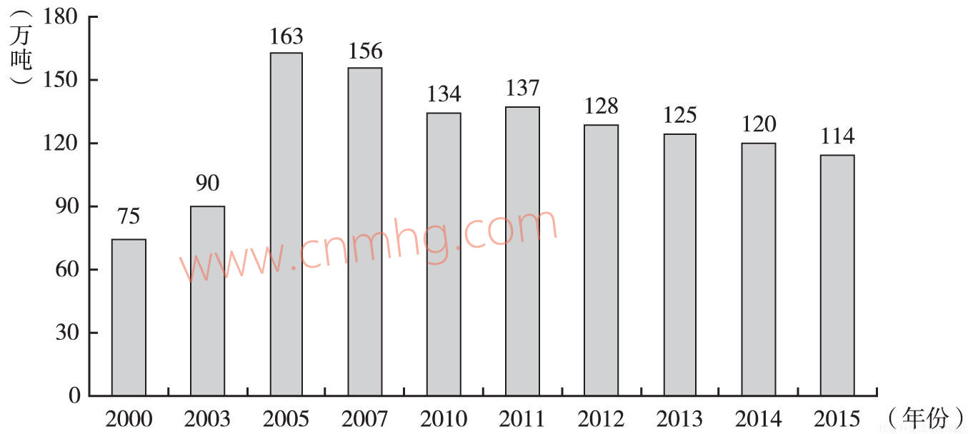 另外,從二氧化硫、煙塵等污染物排放量看,全省污染物排放水平呈現(xiàn)逐年下降的趨勢,但河南仍然是排放大省。2015年,河南二氧化硫、煙塵排放量分別為114.4萬噸、84.6萬噸,分別居全國的第3位和第6位(見圖6~圖8),節(jié)能減排的任務(wù)仍然艱巨。