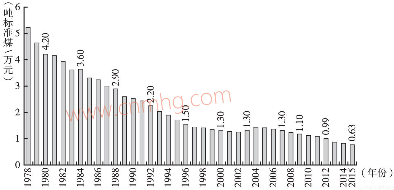 圖5 1978~2015年河南省單位產(chǎn)值能耗變化情況