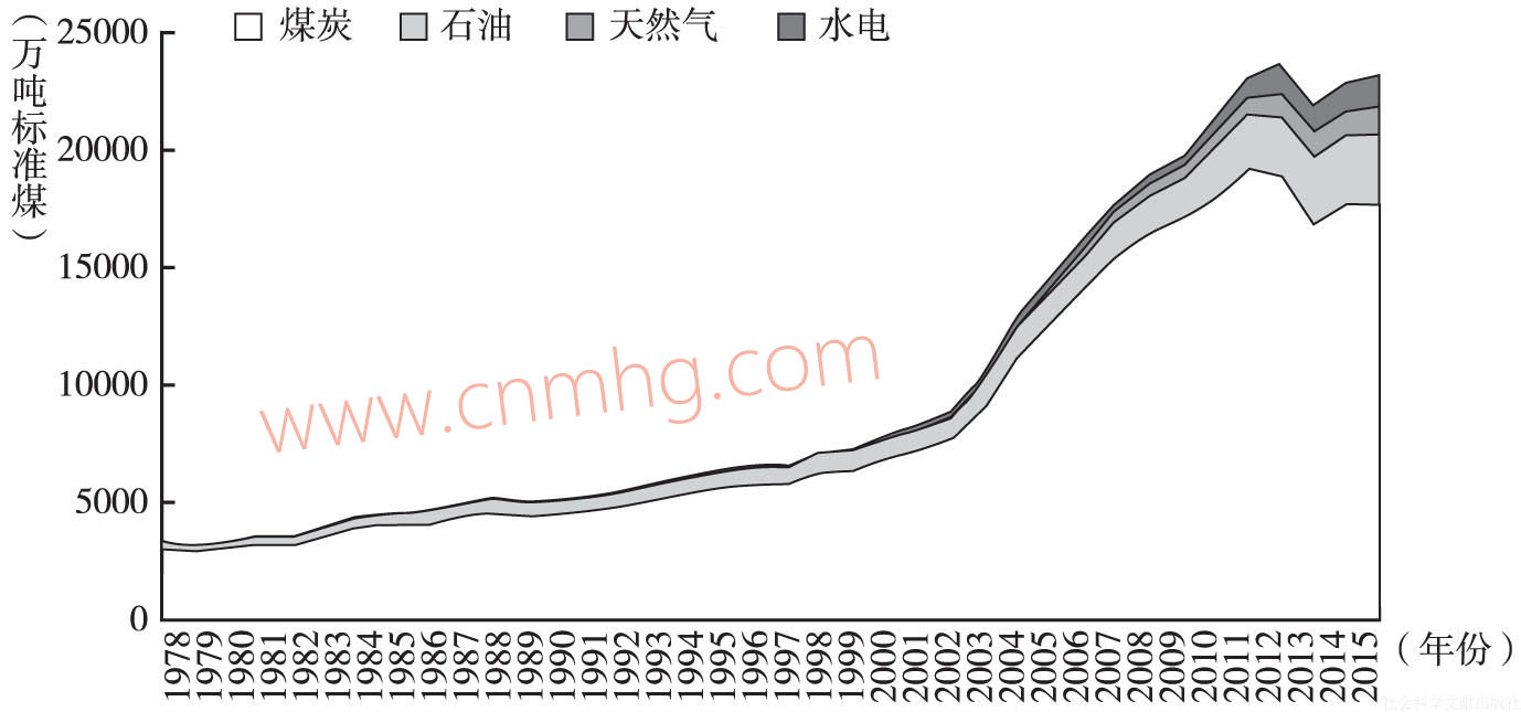 圖4 1978~2015年河南省一次能源消費結(jié)構(gòu)變化情況